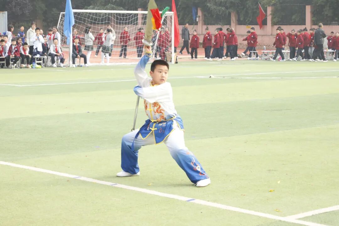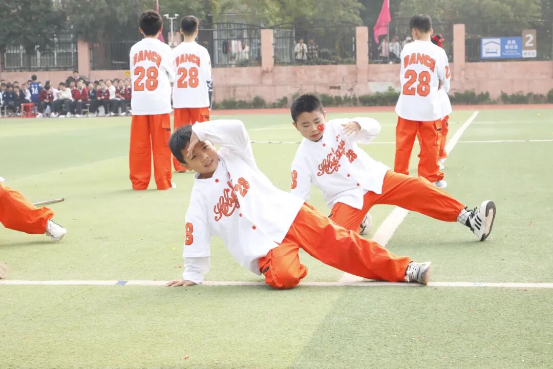 校园特色节目更添亮点,校足球代表队的足球韵律操活力四射,小将们以绿茵为卷、足球为笔,用跃动的节奏展现每日训练的坚持与热爱;街舞社团的表演惊艳全场,酷炫街舞与中华武术刚柔并济,每一个全力以赴的动作,都彰显着少年的自信与飞扬。艺术的旋律与运动的脉搏同频共振,奏响了“强国有我”的少年乐章。