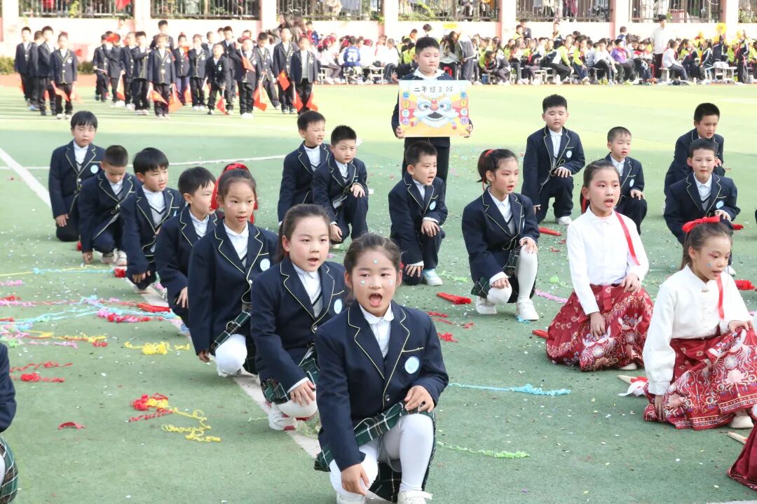 三、四年级的同学们已然褪去稚气,多了份从容与协作。伴随着铿锵的口令,他们步伐一致、摆臂规范,队列横竖成线、整齐划一;“跑步走—立定”的转换干脆利落,转身时动作协调统一,每一个细节都透着平日训练的扎实。整齐的队伍、响亮的口号,不仅展现了中年级学子的精神风貌,更藏着“相亲相爱”的班级默契。