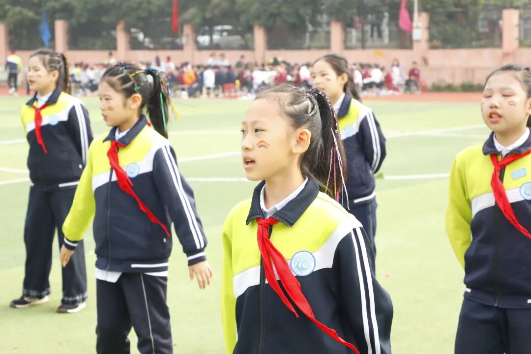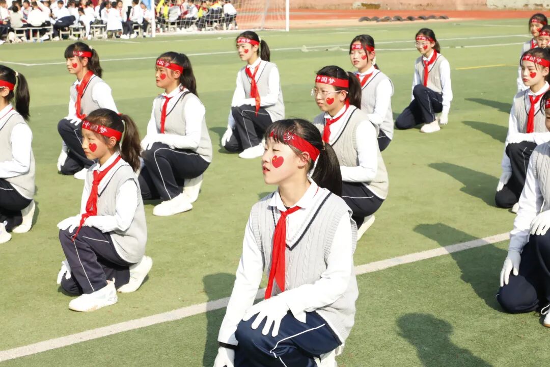 五、六年级的大哥哥大姐姐们压轴登场,气场全开。他们身姿挺拔、精神抖擞,口令响亮有力,步伐稳健铿锵;队列变换灵活流畅,从方阵到梯队,动作干脆利落、衔接自然,尽显“气吞山河”的少年气魄。作为校园里的“领头雁”,他们用飒爽的姿态诠释着“强国有我”的担当,为低年级同学树立了最好的榜样。