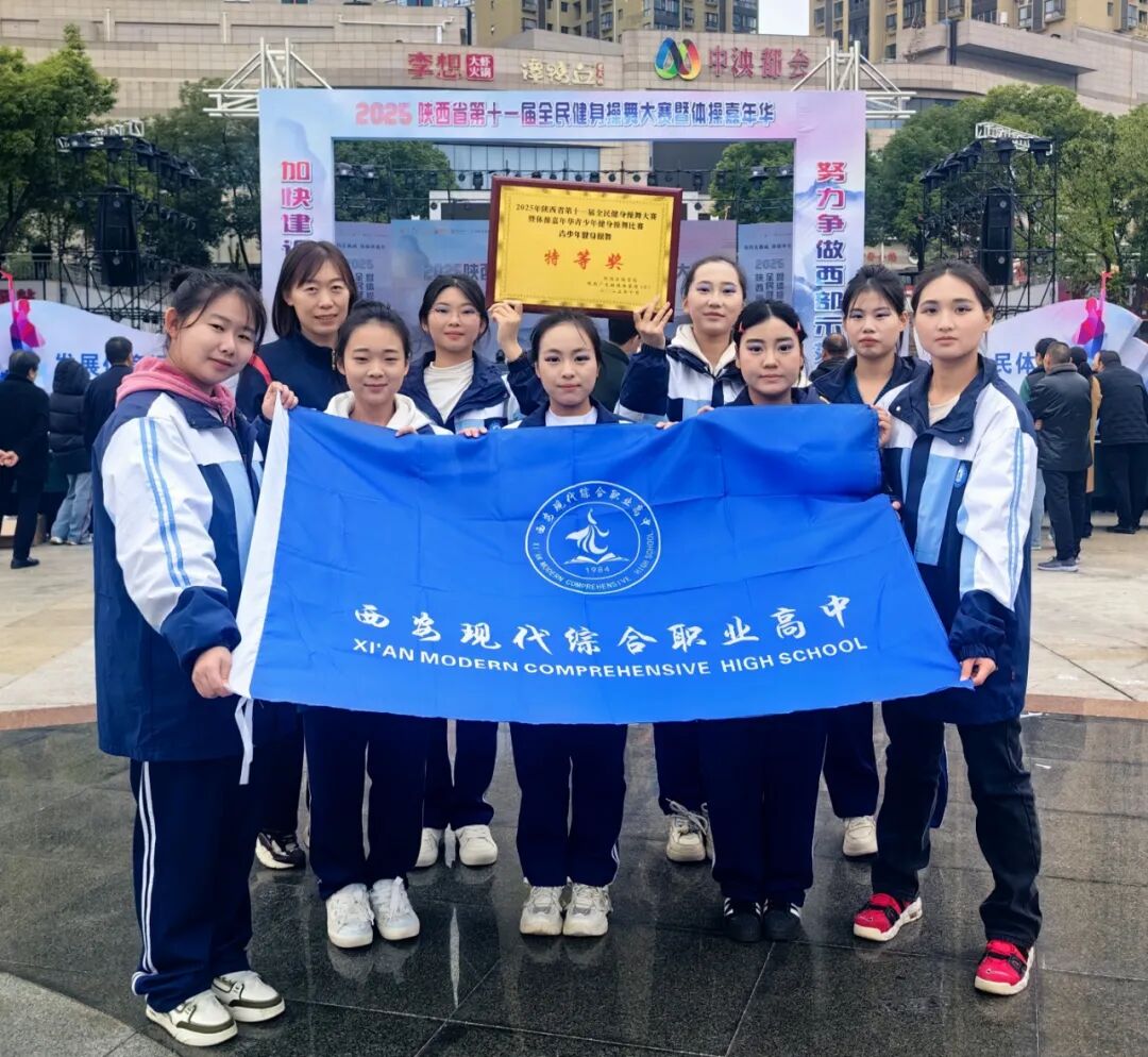 赛场上,来自西安现代综合职业高中2024级郭毕一茹等八名队员们精神饱满,动作精准流畅,队形变化富有创意,将力与美完美结合,其充满青春活力的表演赢得了现场评委和观众的一致好评,最终力压群雄,斩获最高荣誉——特等奖。