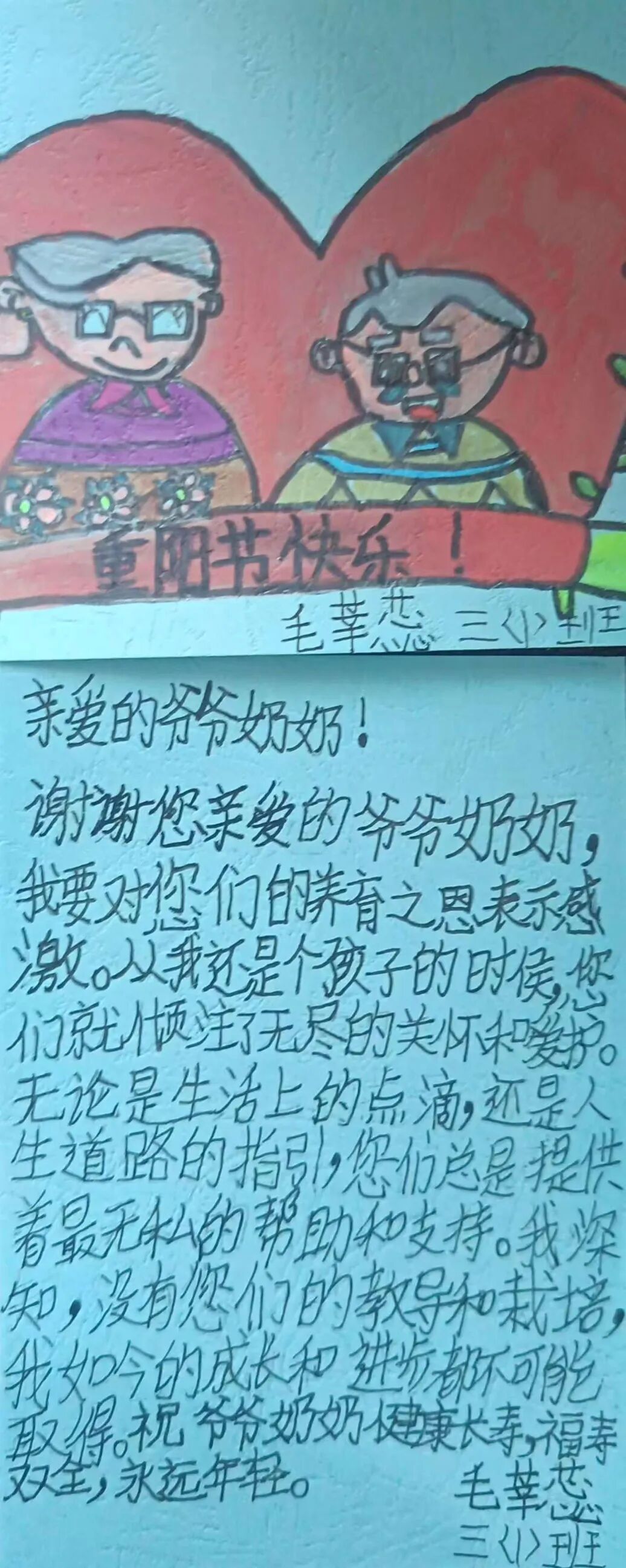 此次重阳节活动,让学生从“了解重阳”到“表达孝心”,再到“践行孝行”。无论是班会课上的感动分享,还是手工作品里的满满心意,亦或是为长辈做事时的认真模样,都让重阳节不再是书本上的“传统节日”,而成为学生成长中一次深刻的“感恩教育”,让孝德文化在实践中代代传承。(何珊)