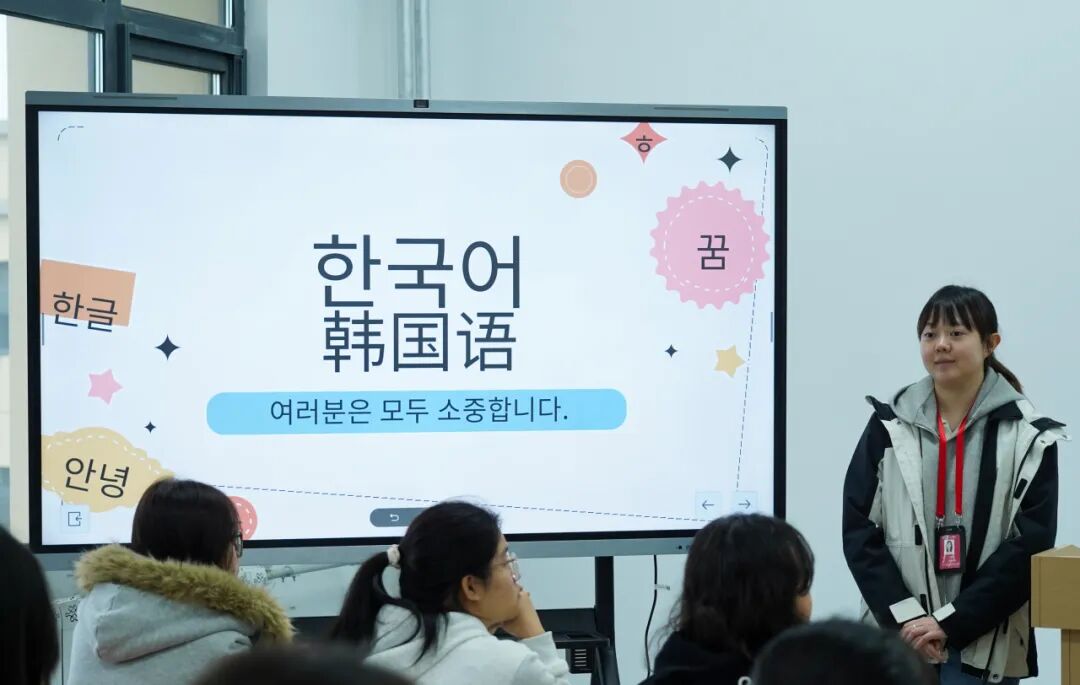 为进一步拓宽学子国际视野、提升跨文化职业竞争力,西安海棠职业学院医学美容系国际交流中心在10月韩语公开课(吸引超400名学生参与)的良好基础上,精心筹备的韩语兴趣班于10月29日正式开课。医学美容系系主任郁昱出席开班仪式并讲话。经国际部老师严格面试选拔,50余名学生成为首批学员,开启系统化韩语学习新程。