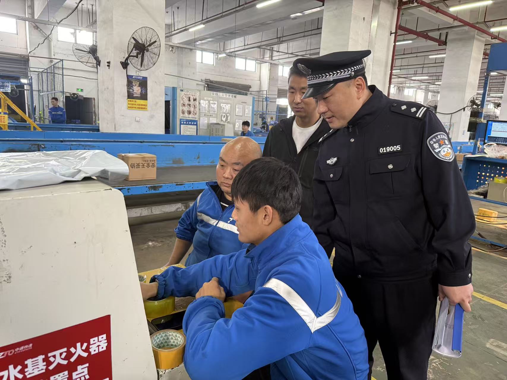 在辖区中通集物流有限公司,五竹派出所民警与治安大队工作人员紧密配合,围绕企业内保制度建立健全、安全生产落实情况、野生动植物保护等重点工作,与中通公司安全部负责人展开深入座谈,详细了解企业日常安全管理流程、隐患排查机制及应急处置预案。随后,民警对厂区流水线作业安全、消防通道畅通情况、用电设施安全性能等重点区域进行细致巡查,对巡查中发现的潜在安全隐患逐一记录,现场向企业负责人指出问题所在,并明确整改要求与限期,切实将安全风险遏制在萌芽状态,确保企业安全生产无漏洞。