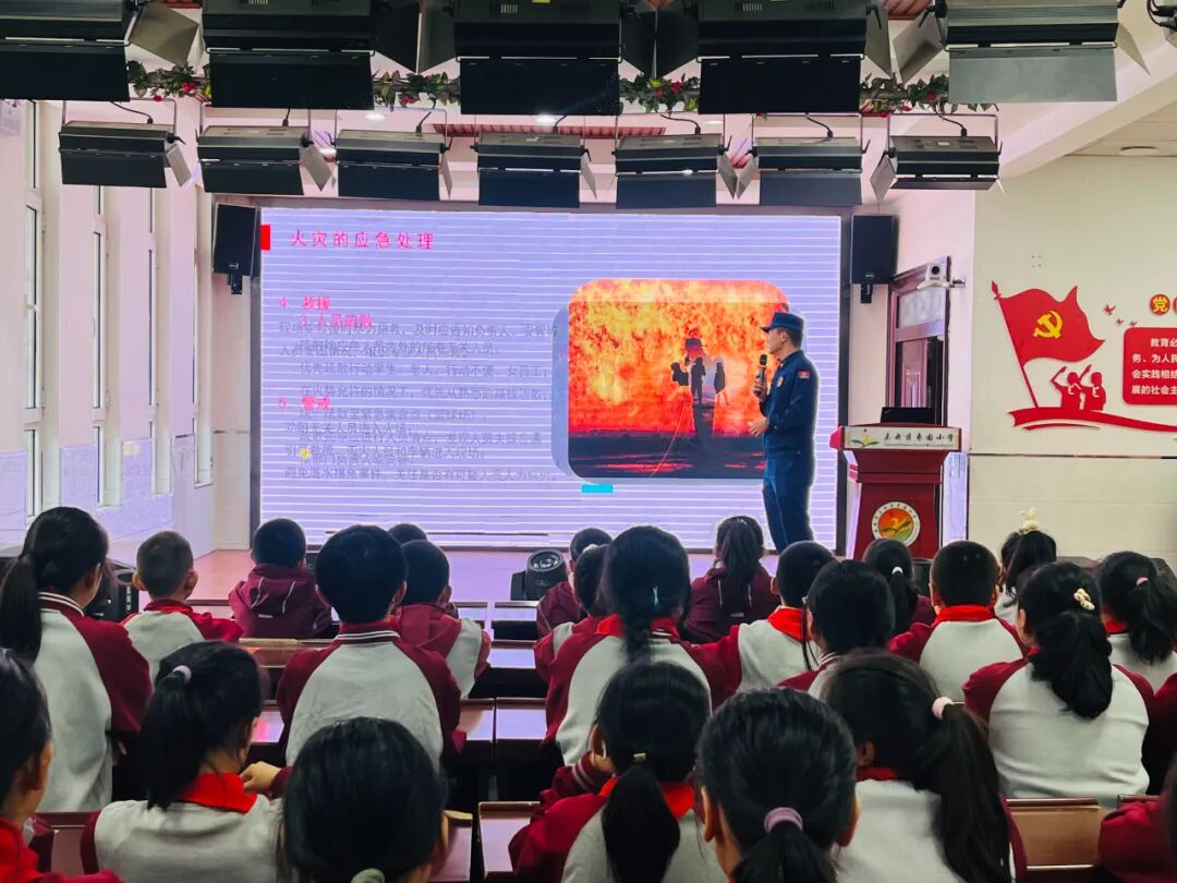 为进一步加强学生消防安全意识,提升火灾自救能力,在第九个全国“消防宣传月”来临之际,西安市未央区枣园小学特别邀请未央路消防救援站王琳栋警官主讲,为全体同学带来了一场内容扎实、实用性极强的消防安全专题讲座,让安全知识真正走进校园、融入心中,为学生们敲响安全警钟,播撒平安种子。