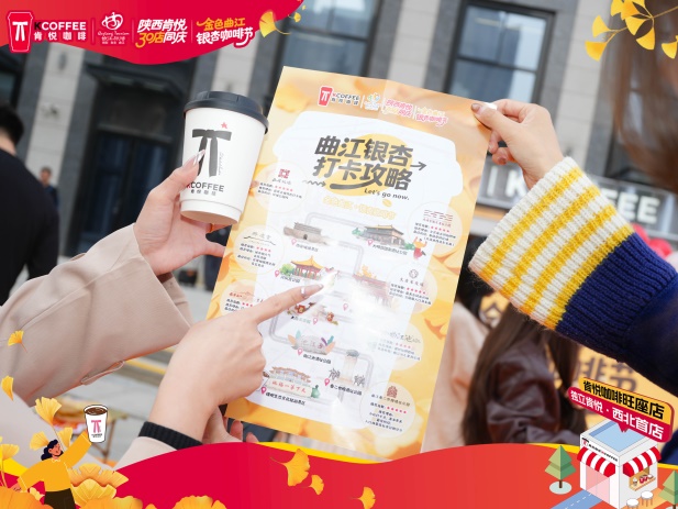 本次“金色曲江·银杏咖啡节”活动以金秋银杏为媒介,将城市咖啡文化与季节性旅游特色深度融合。肯悦咖啡门店(陕西30家肯悦)也同步推出《曲江银杏打卡攻略》,详细标注各个景点赏银杏的最佳机位,引导消费者在品味咖啡的同时循着地图探索古都秋色。消费者凭曲江旗下8个景点的票根或赏银杏打卡照片,到店消费即可获得精美礼品一份,实现“一份地图、一张票根、一杯咖啡、一个礼物”的沉浸式文旅体验。