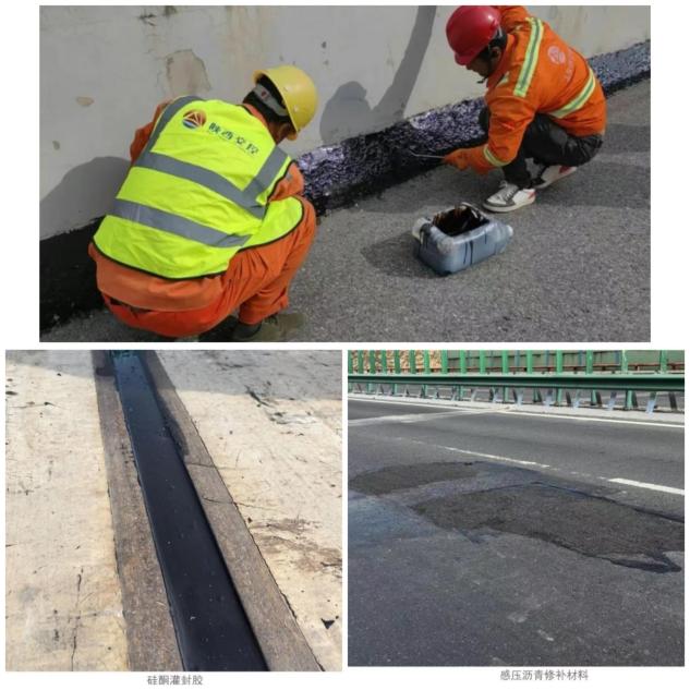 延安分公司成功引入三种新型养护材料,为800余公里管养路段注入“科技力量”。环氧煤沥青涂料融合环氧树脂与煤沥青双重优势,能紧密贴合护栏表面,可有效隔绝融雪剂、雨水等腐蚀介质的侵蚀,为桥梁护栏披上“防腐衣”,大幅降低后期维修成本。硅酮灌封胶应用于桥梁伸缩缝,具备强粘结性与自适应变形能力,有效防止雨水渗入和钢筋锈蚀,延长桥梁使用寿命。感压沥青修补材料如“路面创可贴”,其采用特殊改性沥青(感压激活剂)作为粘合剂,与密实级配石料常温拌和而成。仅需“清理、填补、碾压”三步实现“即铺即用”,特别适用于应急修补与高频通行路段。
