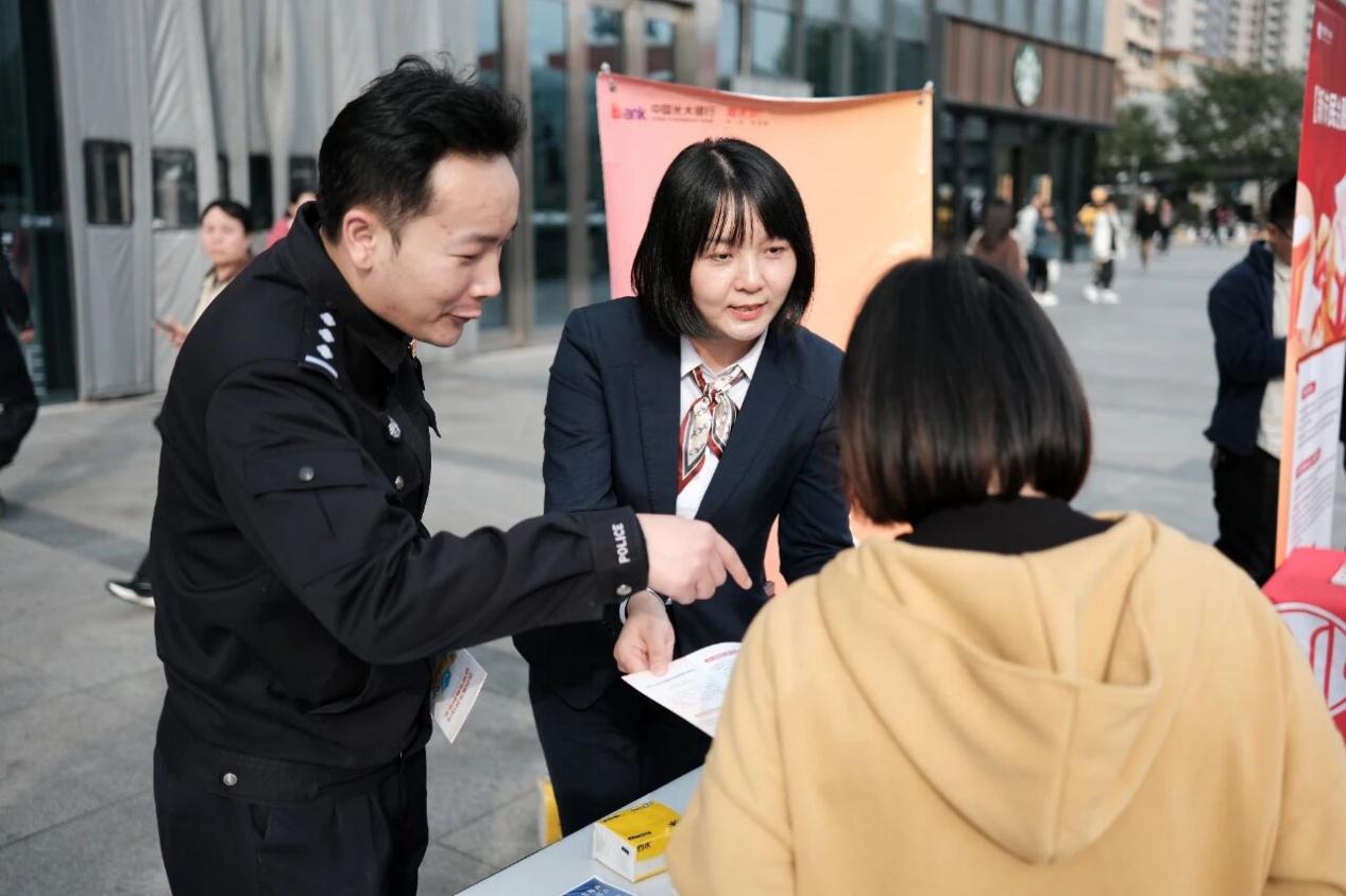 阳光讯 (记者 熊玺 文/图)为全面提升群众防范电信网络诈骗意识,切实筑牢辖区反诈防护体系,10月31日,西安市公安局新城分局刑侦大队、胡家庙派出所联合区委金融办、区检察院、胡家庙街道办等部门,辖区11家金融机构,以及通信运营商,共计18家单位在万和城广场共同举办反诈宣传暨满意度测评主题活动。