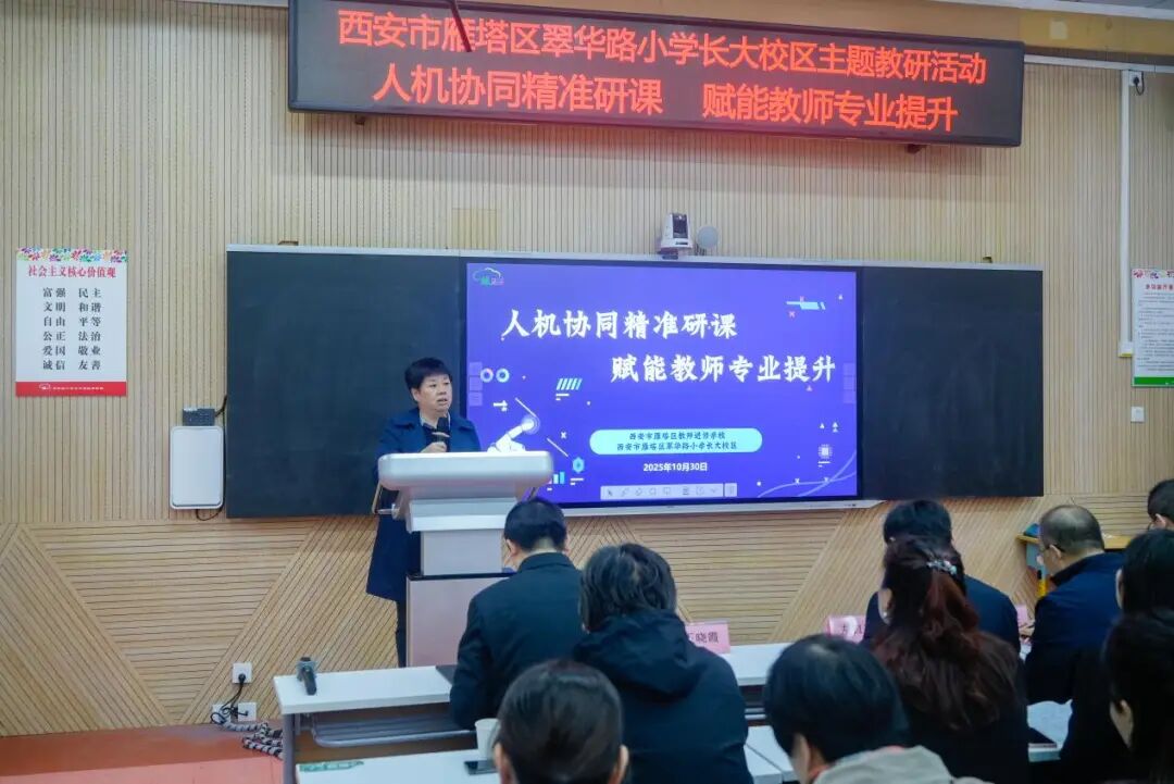 阳光讯 (记者 杨小娟 文/图)为积极响应国家教育数字化转型战略,推动教研模式从“经验驱动”向“循证驱动”的深刻变革,10月30日上午,在西安市雁塔区教育局的坚强领导与区教师进修学校的大力支持下,西安市雁塔区翠华路小学长大校区成功举办了“人机协同精准研课 赋能教师专业提升”主题教研活动。本次活动汇聚了区教育局领导、进修学校专家、各学科教研员及教师代表,共同探索数字时代教研新路径。