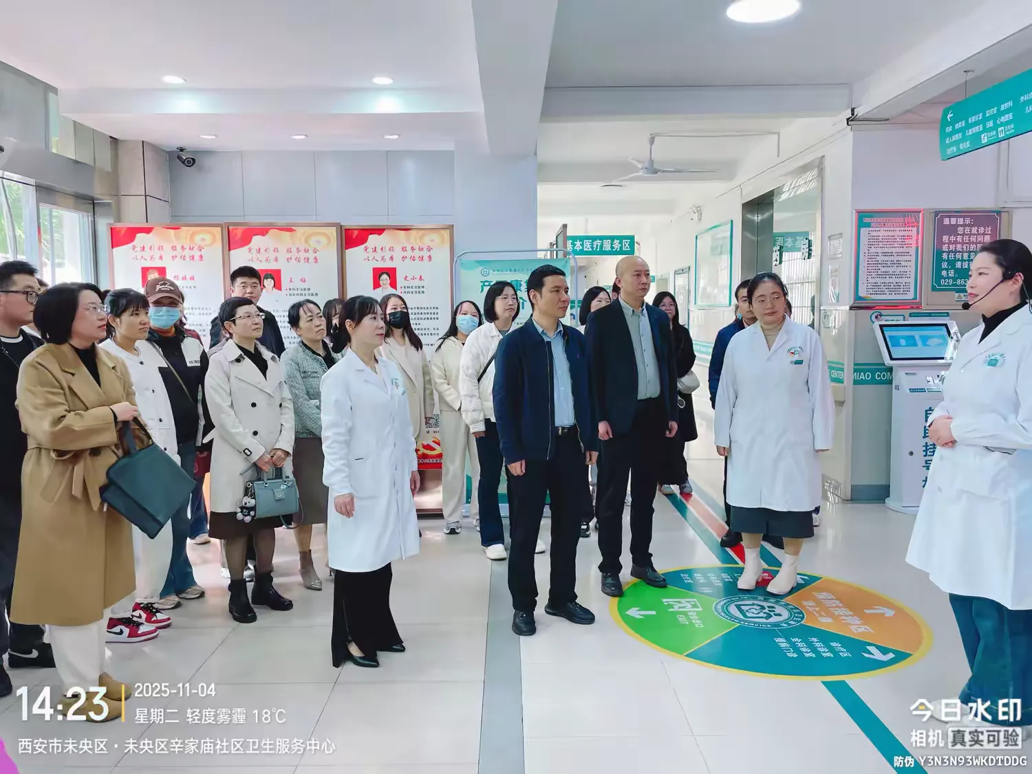 在未央区卫健局党委副书记牛进,健康促进与疾病预防科科长刘雅琼,辛家庙社区卫生服务中心领导班子陪同下,观摩组一行实地了解中心各科室运行情况,从全科诊疗到公卫服务、医联体运行到全科能力提升、医防融合服务到家庭医生签约服务等关键环节,与中心工作人员进行深入探讨交流。参观过程中,大家对中心在信息化赋能医疗服务、持续提升诊疗能力与服务效能等方面取得的成效给予了高度评价。