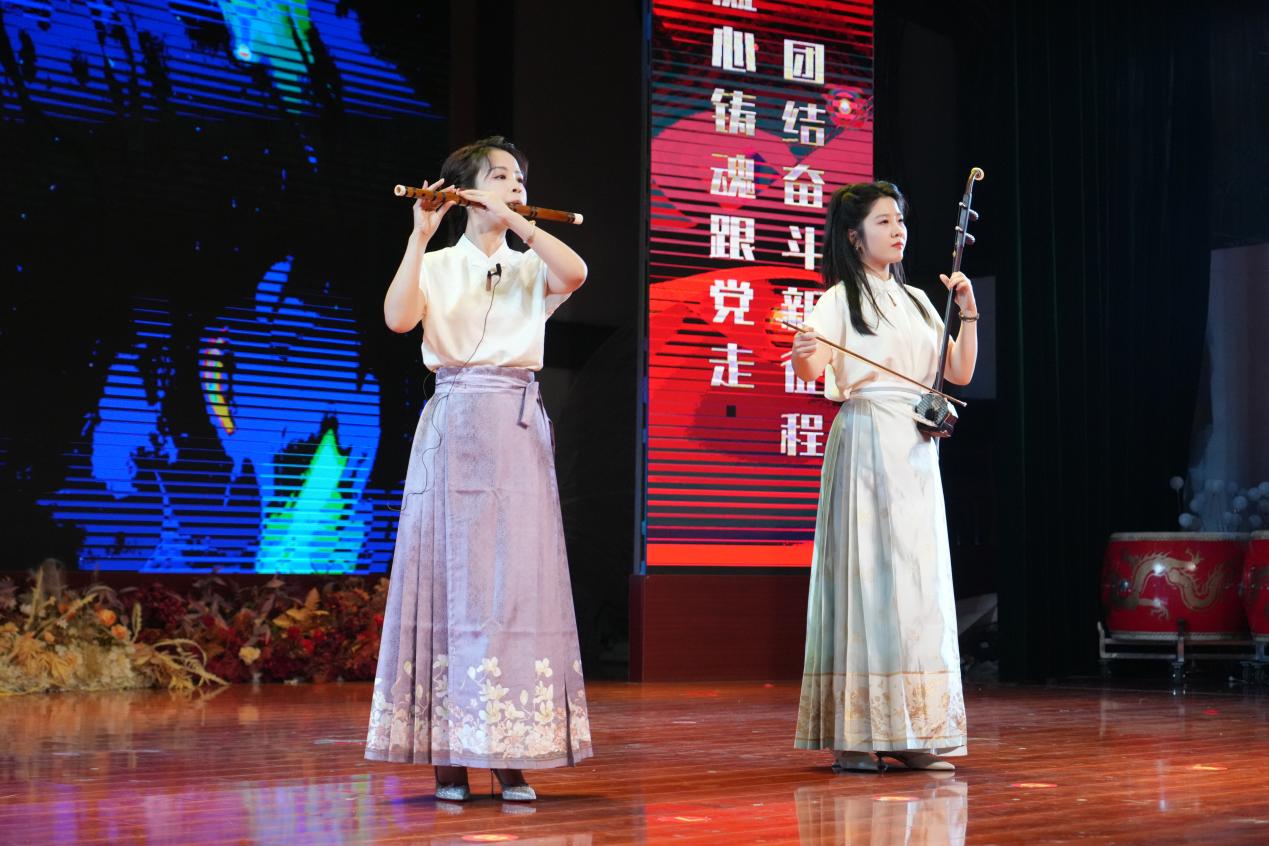 舞蹈《月下闺梦》和《心之寻》、乐器合奏《太极琴侠》、诗词演绎《将进酒》、歌曲《绿色军衣》为在场观众呈现出一份视听盛宴;魔术《鸽剧魅影》用绝妙的手法让观众为之惊叹;朗诵《百年交响》字字句句无不震撼着观众的心灵。随着歌伴舞《珊瑚颂》优美动听的旋律,整场演出落下帷幕。