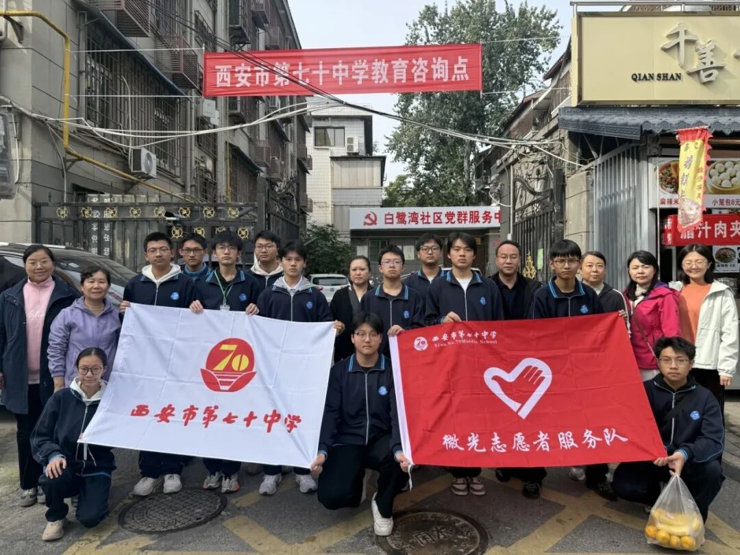 阳光讯(记者 郑亚雷)11月1日,西安市第七十中校领导带领“微光志愿者服务队”师生走出校园、深入社区,开展敬老志愿服务活动,将志愿微光播撒到社区基层角落。活动中,师生以尊老敬老的实际行动传递温暖,践行“奉献、友爱、互助、进步”的志愿精神,既用扎实举措诠释了责任与担当,更让敬老爱老的传统美德在服务群众的实践中熠熠生辉。