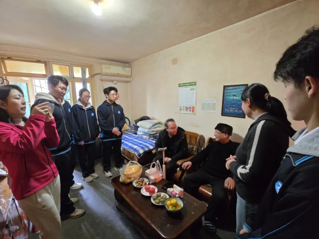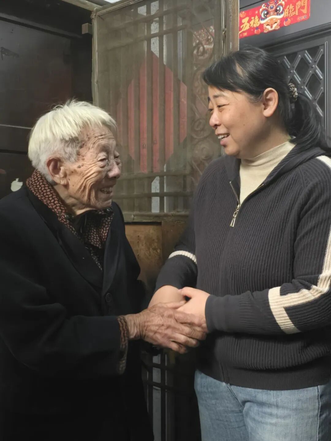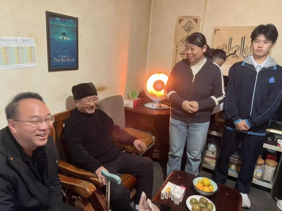 “你们来了,我这屋子都亮堂了!”面对校领导与同学们的到访,社区老人满脸笑意、眉眼弯弯。同学们围在老人身边,认真聆听校领导讲解敬老传统的时代价值;老人则握着校领导的手,缓缓细数生活中的点滴温暖与幸福……一老一少、一师一生的亲切互动间,岁月温情静静流转,志愿火种也在代际对话中愈发炽热明亮。