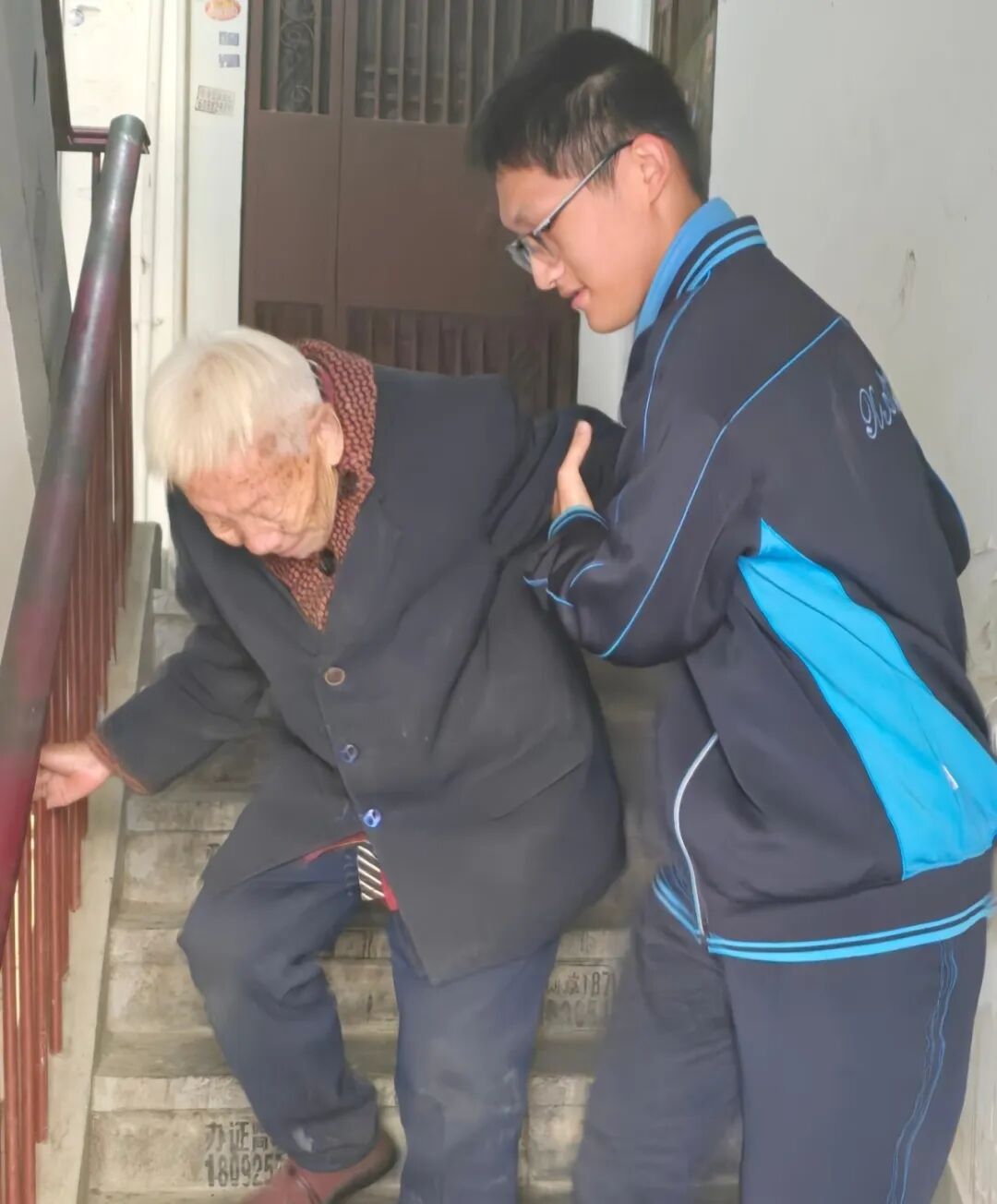 同学们主动搀扶行动不便的老人,帮忙打扫室内卫生,脸上始终洋溢着真诚笑意。他们围在老人身旁唠家常、话冷暖,陪老人回忆过往、畅谈当下,昔日略显寂静的社区角落,因这份真挚陪伴变得格外温馨热闹。老人脸上舒展的笑容,是对这份关怀最质朴的回应,也让志愿服务的意义在双向互动中愈发凸显。