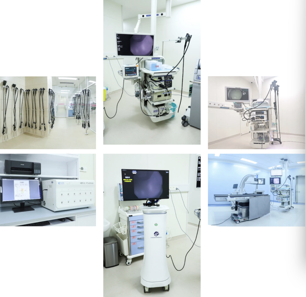 消化内镜中心配备了众多诊疗设备,包括胃肠镜45条(含高清胃肠镜、放大胃肠镜、超声胃镜等)、奥林巴斯X1主机1台、奥林巴斯290主机4台、富士7000主机1台等,同时拥有人工智能内镜精灵、消化内镜质控管理平台、ERCP移动中C型臂机等先进设备。这些设备为疾病的精准诊断与微创治疗提供了坚实保障,使中心能够开展碳13呼气试验、超声内镜检查、内镜下早癌染色诊断、ERCP、ESD、POEM等一系列高难度诊疗技术。