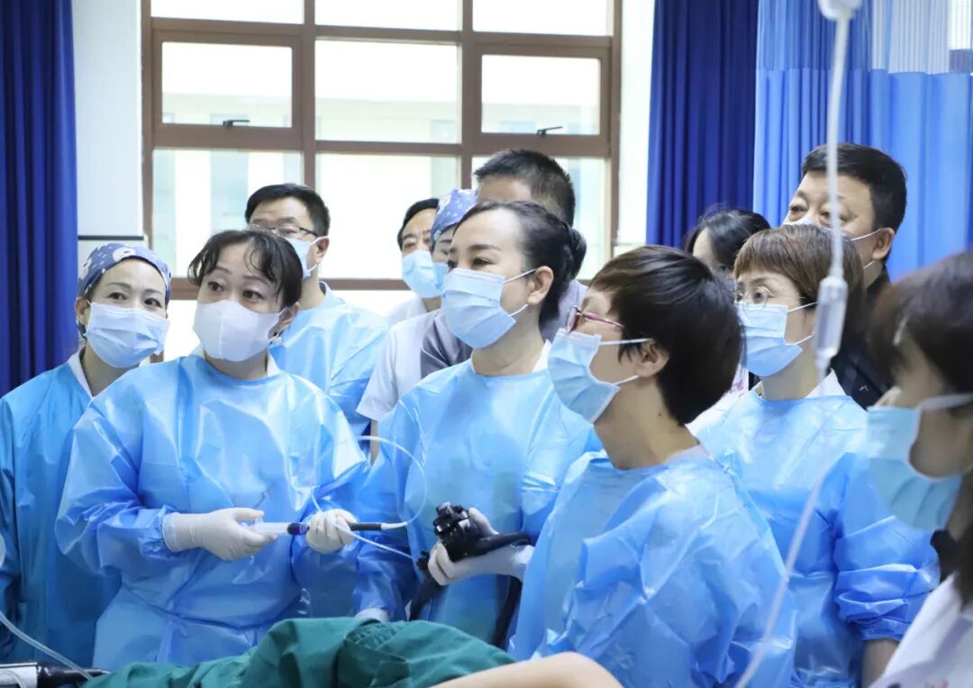 此外,医院还通过建立医联体办公室,在延安、宝鸡、渭南、商洛等地区建立工作站,固定人员下基层进行技术帮扶,有效落实医联体机构帮扶带教,不仅扩大了品牌影响力,也推动了区域医疗服务水平的整体提升。消化内镜中心还带动了麻醉科、胃肠外科、病理科、肝胆外科等7个学科的协同发展,形成了“以点带面、全面发展”的良好格局。