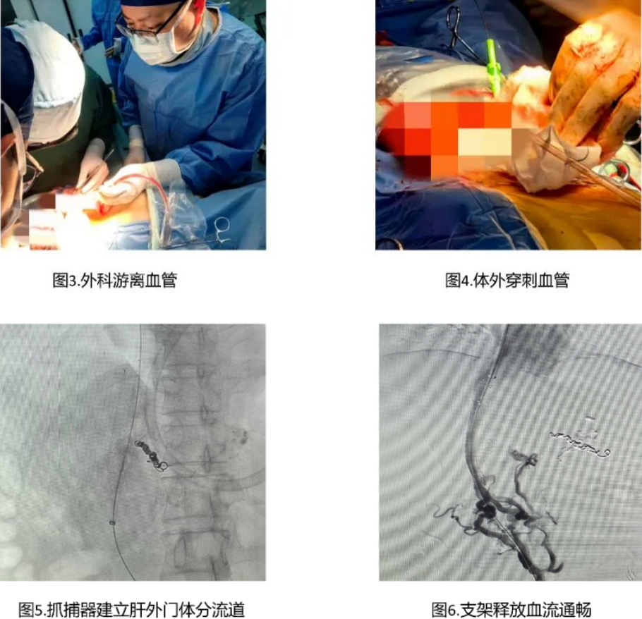 手术当日,在复合手术室多团队协同下,介入血管科团队克服“目标血管定位难”等关键障碍,凭借术前预案与丰富经验,迅速锁定目标侧支,成功建立肝外门体分流通道。支架顺利释放、血流即刻通畅、门静脉压力显著下降。术后患者恢复良好,消化道出血风险大幅降低。