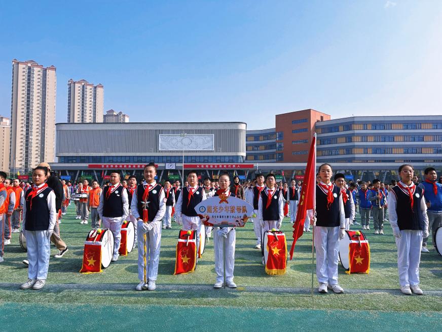 11月4日,灞桥区教育局、团区委、区少工委联合在西安市东城第二学校举办“强国复兴有我 争当新时代好少年”——2025年灞桥区少先队鼓号队交流展示活动。灞桥区惠王中心小学“阳光少年”鼓号队参加了此次交流展示活动。