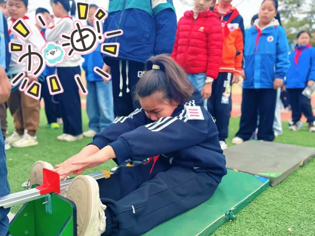 赛场之上,活力四溢。50米跑道上,小选手们铆足干劲,枪声一响便全力冲刺,展现出强劲的爆发力;坐位体前屈测试区,同学们挺直腰背、专注发力,在柔韧性比拼中挑战身体极限;1分钟跳绳场地里,绳子飞速翻飞,计数声此起彼伏,每一次跳跃都彰显着速度与活力;仰卧起坐测试中,同学们咬紧牙关、坚持到底,用毅力诠释运动精神;五六年级的50米×8往返跑项目,更是对耐力的考验,选手们相互鼓劲、奋力奔跑,赢得场边阵阵喝彩。