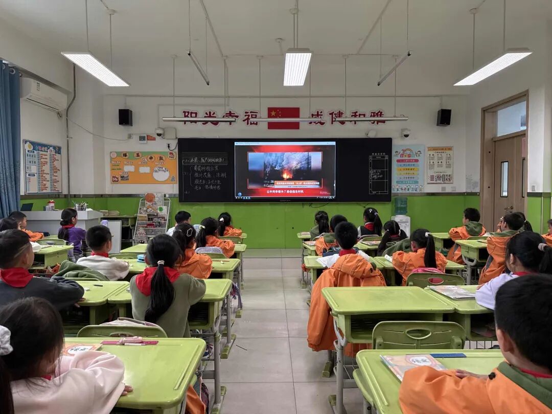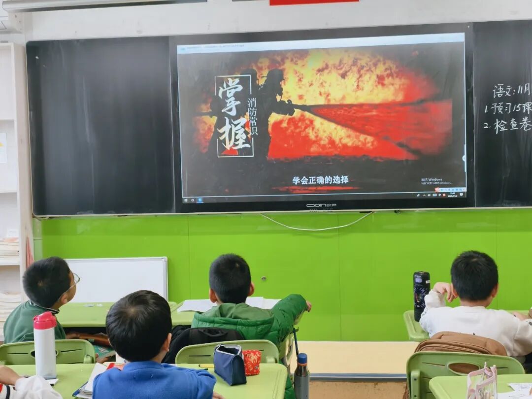活动开篇,各班级以班会课为阵地,开启 “消防安全知识小课堂”。电子屏上,火灾警示案例、动画版逃生技巧,学生们紧盯屏幕,手中笔不停:“打火机不能碰”“插座旁不堆纸”“烟雾里要弯腰走”,一个个关键要点被认真记录。