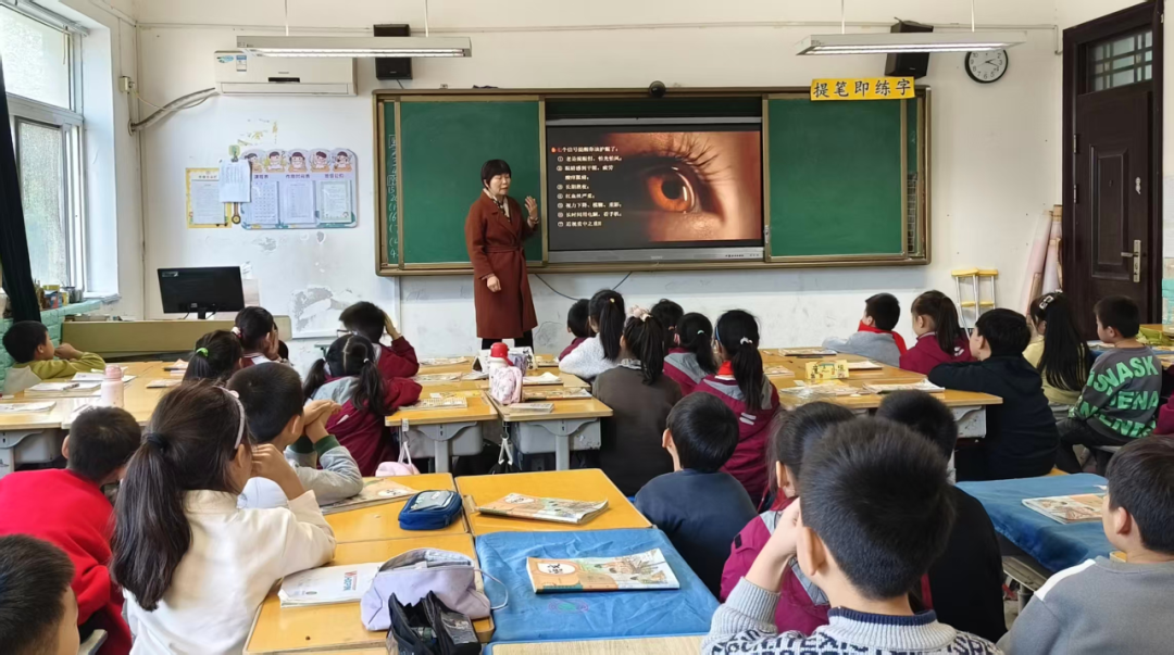 三年级一班与三年级八班聚焦孩子的“明眸健康”,围绕“保护视力,预防近视”展开教学。家长从专业解读“什么是眼轴”,到共同强调“近视对未来专业选择的影响”,再到手把手指导“改掉不良用眼习惯”“坚持正确护眼”,每一个知识点都紧扣孩子日常,让“科学护眼”的种子在心中扎根,帮助孩子们守护好看见世界的“小窗户”。
