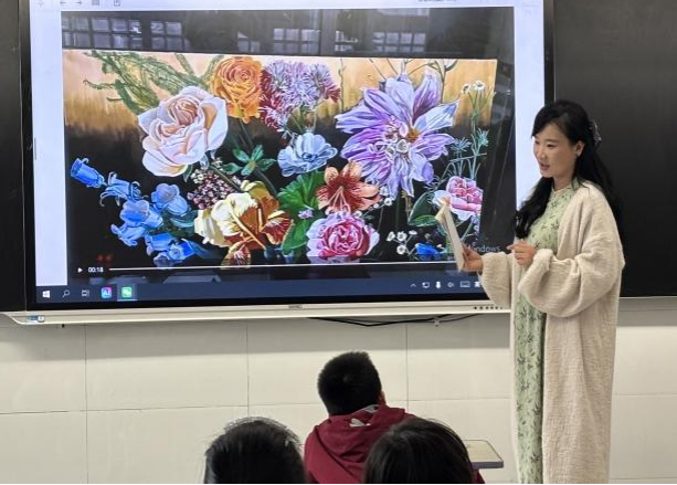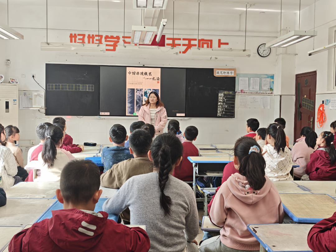 艺术与非遗的碰撞,让课堂充满了文化与创意的气息。三年级六班的《中国非遗技术——扎染》课程,家长先介绍“四大印染主要分布”,再拆解“扎染六步骤”,最后带领孩子们亲手“体验扎染”,当白色方巾在手中变成独一无二的图案,孩子们不仅感受到了非遗技艺的魅力,更收获了动手创作的快乐;三年级二班则邀请到美术馆的画家家长,带来《美术的历史》科普,从古老的壁画到现代的画作,孩子们在艺术长河中遨游,随后还学习“绘制身体情绪地图”,用色彩表达内心,最后在欣赏画家作品的过程中,提升了审美感知力。