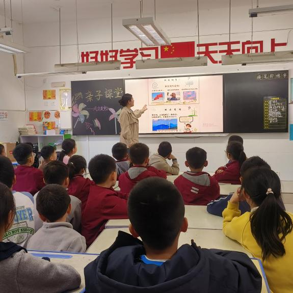 科技与生活的结合,让三年级四班的《风力发电的原理》课堂充满了探索乐趣。家长用通俗的语言讲解“什么是风力发电”,展示“风力发电小模型”,让抽象的科技原理变得直观易懂;随后延伸到“风力发电对生活的影响”,并引导孩子们“改掉不良用电习惯”“学习如何正确用电”,在培养科学思维的同时,也树立了节能环保的意识。
