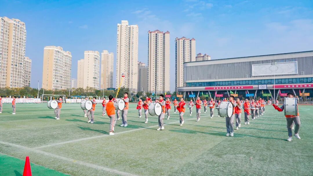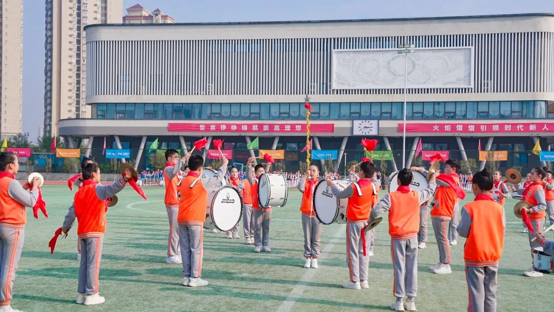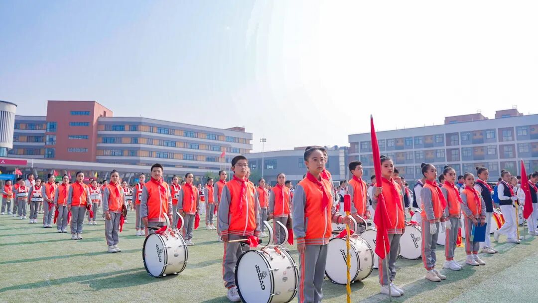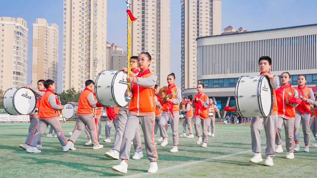 队员们以“晨光启航”“雏鹰展翅”“向阳花开”等五大特色方阵,将“责任、智慧、创新”的学校新时代发展核心理念融入每一个音符,用“五角星”“太阳花”等灵动队形,充分展现了新时代少年朝气蓬勃、奋发向上的精神风貌,赢得了评委与全场观众的高度赞誉。