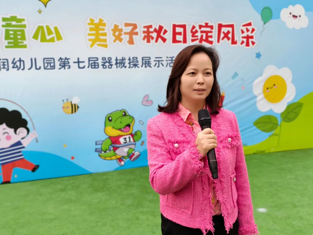 赵博文园长为本次器械操活动致开幕词,对老师们在排练过程中的辛苦付出给予肯定,同时希望小朋友们能够尽情地展现自己的才华和能力,不怕失败,勇于挑战,并祝愿小运动员们能够在赛场上精彩表现,预祝器械操展示活动圆满成功。