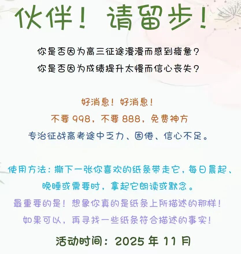 同学们纷纷表示,这些积极暗示语如同一剂强心针,有效缓解了长时间备考带来的压抑情绪,让他们在面对高考挑战时更加坚定和自信。