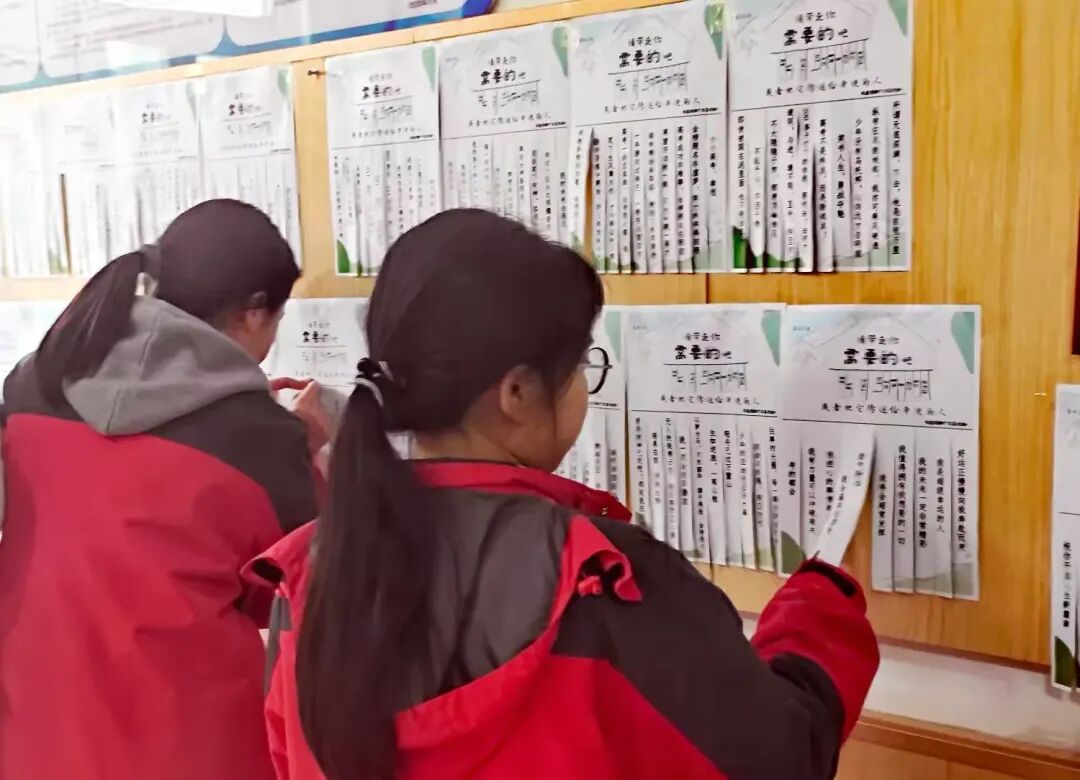 这些积极语言被裁切成方便摘取的小纸条,从这天开始的一周,高三同学都可以自由地浏览墙上的每一张小纸条,并根据自己的喜好和需要,选择1-2句最能触动心灵的话语,轻轻地撕下来带走。