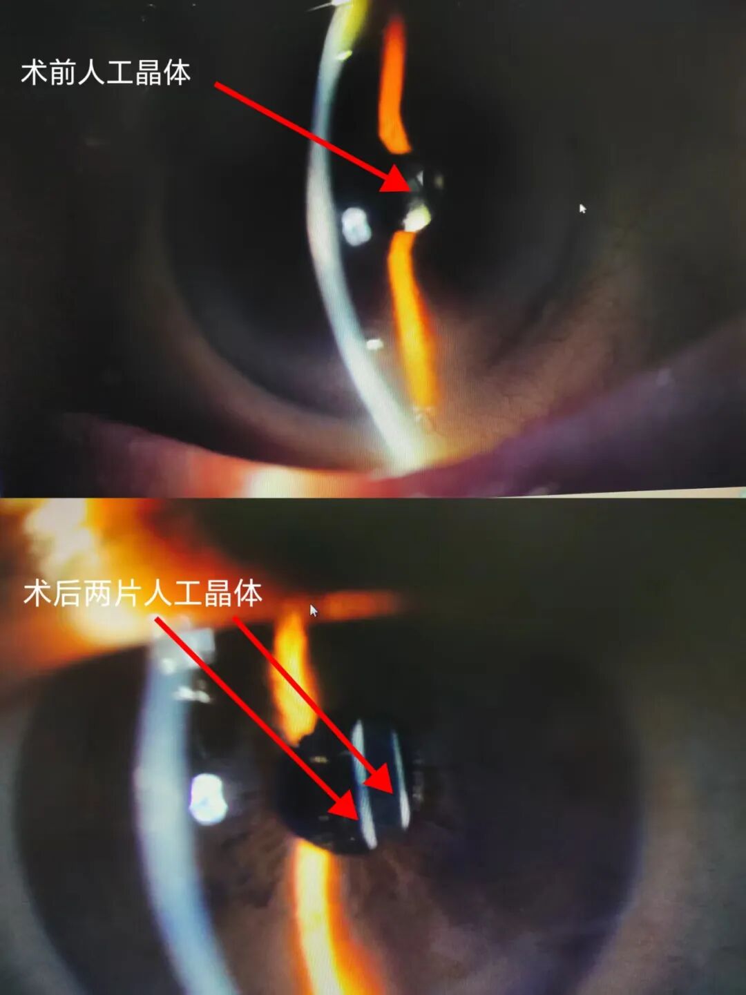 针对上述难题,张红兵教授带领眼科团队制定了周密的手术方案:决定不动第一枚人工晶体,直接植入第二枚人工晶体,将第二枚人工晶体放置在第一枚人工晶体的前面。