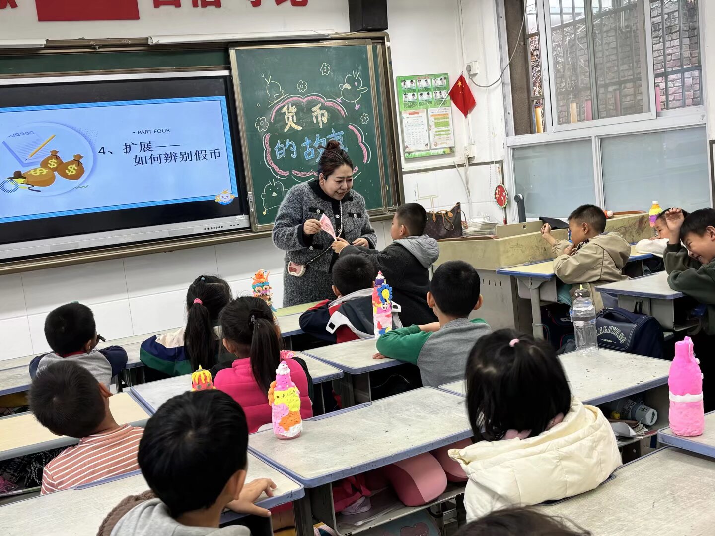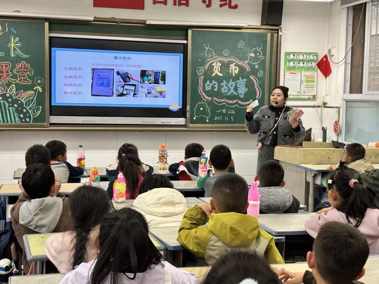 张启元妈妈把“金融世界”变成童趣乐园,她以“解决交易难题”为主线讲授货币故事:先通过物物交换的不便引出贝壳、谷物等早期货币,再讲解金属货币因价值稳定成为主流,介绍北宋“交子”这一世界最早纸币的诞生背景。重点讲解了如何分辨假币。最后结合生活实例,对比电子支付与数字货币,让大家清晰看到货币从实体到虚拟的演变逻辑。