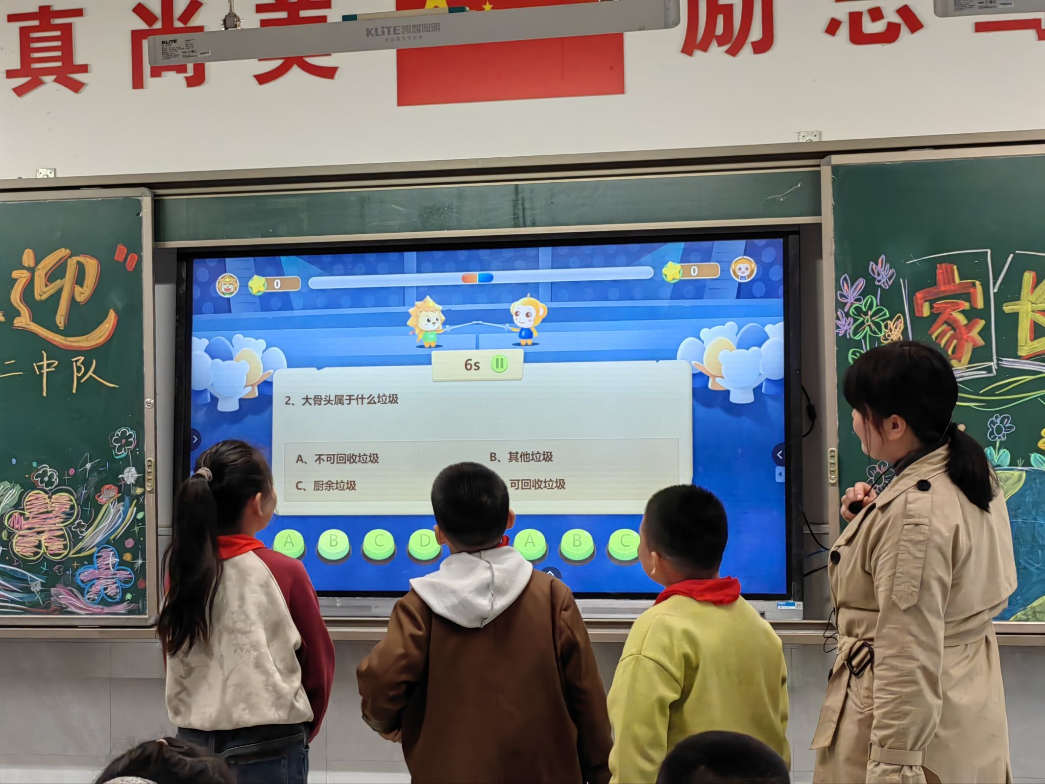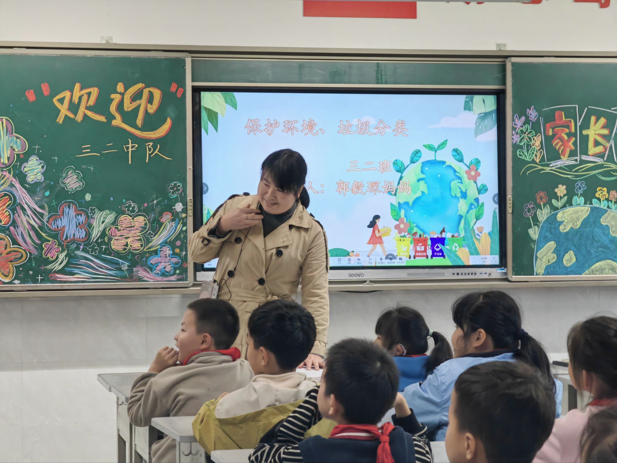 郭毅琛妈妈成了“垃圾分类指挥官”:结合案例讲解环境危害与分类知识,设计投放实践、知识竞赛等互动让孩子们懂分类、愿践行,既强化环保意识,更搭建起家校共促孩子成长的桥梁。最后,全场环保小达人的热情瞬间被点燃。