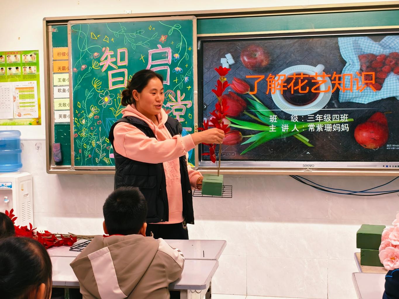 常紫珊妈妈从鲜花品种、选材技巧逐一讲解,细致演示修剪、搭配、固定等花艺制作步骤,还为孩子们准备了丰富花材以生动讲解结合实操演示,带孩子们认识多样鲜花素材,了解花艺搭配逻辑与制作步骤。孩子们在亲手创作中感受自然之美与手工魅力,既收获了实用技能,也拓宽了对不同职业的认知,让课堂学习更具趣味性与实践性。