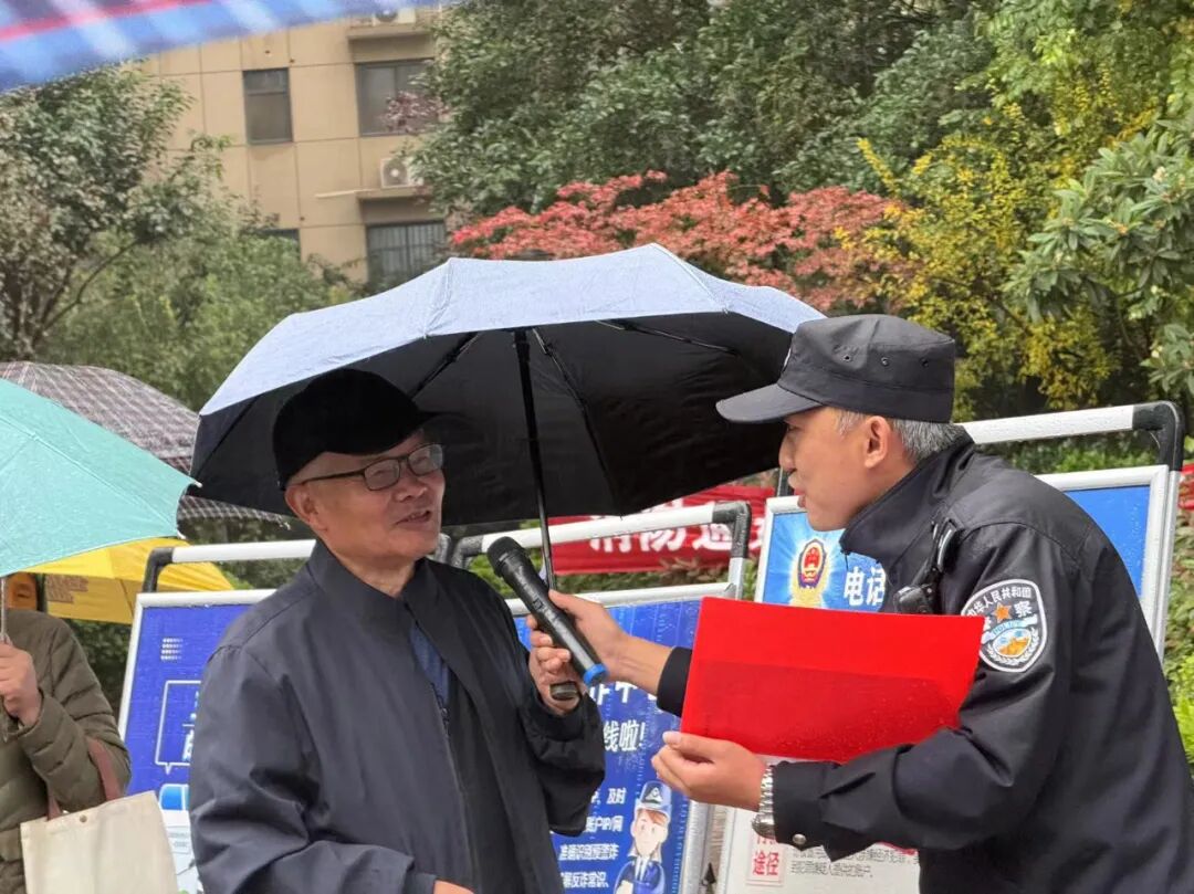 为增强宣传的趣味性和参与感,活动设置“反诈知识有奖竞答”环节。民警围绕常见骗局现场提问,居民踊跃参与,在轻松氛围中巩固防骗知识。“这种形式好,既能拿奖品,又能学知识,比单纯发传单更让人记得住!”一位居民高兴地说。