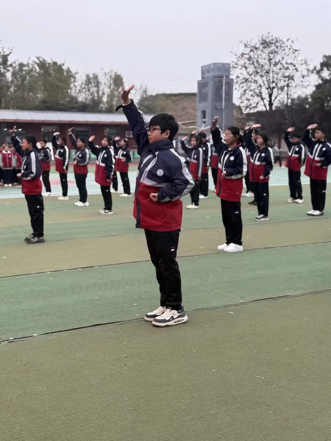 本次比赛邀请了学校领导、红拳教练,年级组教师组成专业评委团,从精神面貌、动作规范、队列整齐度、红拳招式熟练度等多个维度进行公正评分,根据评分结果,最终评选出