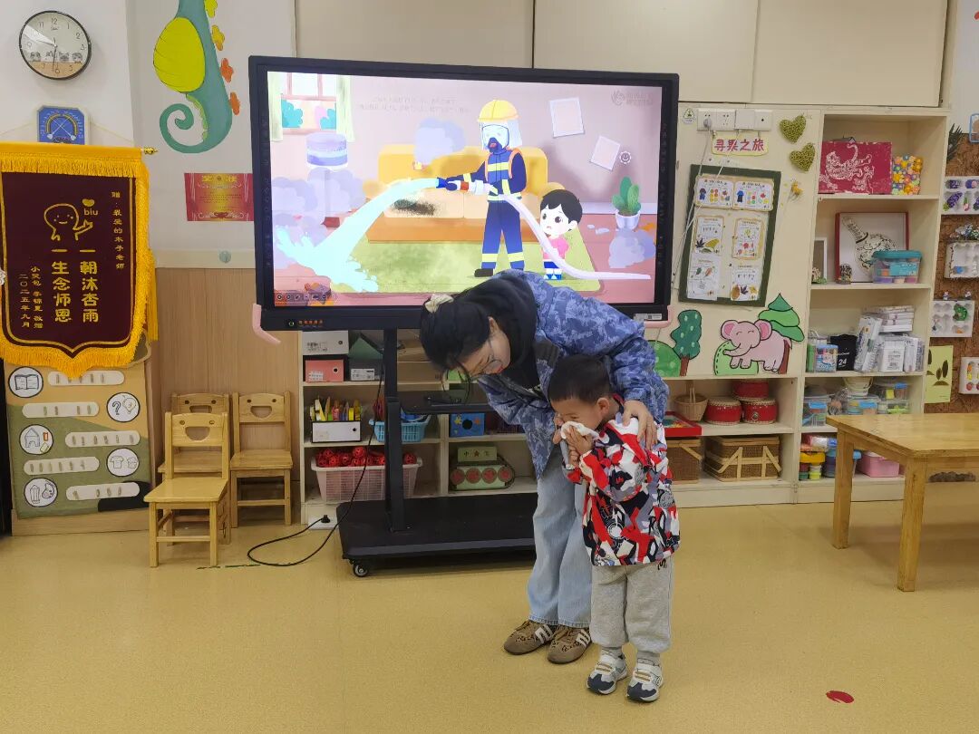 在演练正式开始前,消防安全教育早已悄然融入孩子们的心中。老师们通过故事、图片和动画的形式,为孩子们讲解了火灾的危害、预防知识以及正确的逃生方法。小小的脑袋里,装满了“弯腰低姿”、“湿毛巾捂口鼻”等大大的学问,消防员叔叔们也近距离的进班给孩子们进行逃生指导,为实战演练做足了准备。