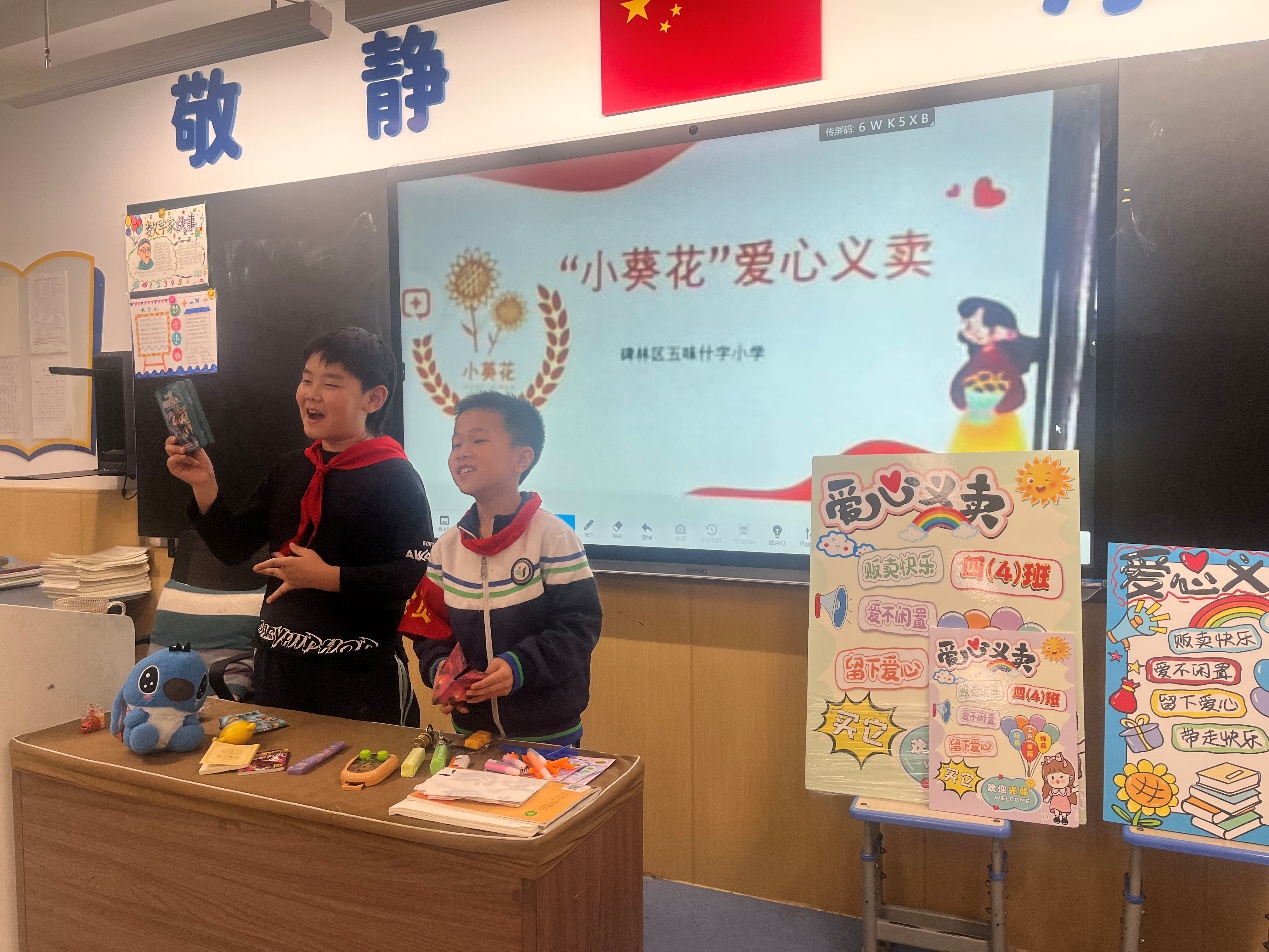 阳光讯(记者 张晶 通讯员 张宁馨 祁敏 )为营造乐于奉献、团结奋进的良好校园文化氛围,引导学生用实际行动践行社会主义核心价值观,提升学生创新能力、实践能力、人文素养,培养勤俭节约意识和社会责任意识,2025年11月5日下午,碑林区五味什字小学组织四年级学生开展了“小葵花”爱心义卖活动。