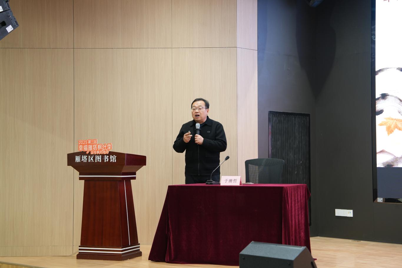 作为本届枫叶季的核心亮点,读书会特邀陕西师范大学历史文化学院于赓哲教授担任主讲。于教授深耕通俗讲史,著述丰富,曾六度登上央视《百家讲坛》,擅长以生动语言解读厚重历史。围绕“诗都长安:李白与杜甫”这一主题,他结合丰富史料,细致解析了两位诗人在长安的生命轨迹、心路历程与创作实践,引领观众重回气象万千的盛唐时代。在他的讲述中,李白与杜甫的形象跃然眼前,长安作为“诗都”的深厚底蕴也在诗与史的对话中缓缓展开,让现场观众跨越时空,领略唐诗的不朽魅力与古都长安的文化积淀。