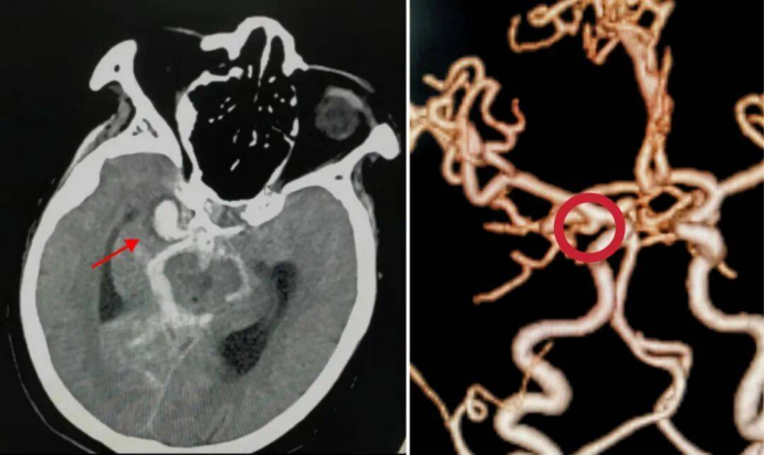 该患者由外院转诊而来,入院时已出现嗜睡、剧烈头痛、呕吐等危急症状,头部CT检查显示其存在广泛蛛网膜下腔出血,病情凶险,随时可能因动脉瘤再次破裂危及生命。面对复杂病情,经开院区神经外科团队迅速响应,联合多学科专家紧急会诊,结合患者病情制定了周密的介入栓塞手术方案。