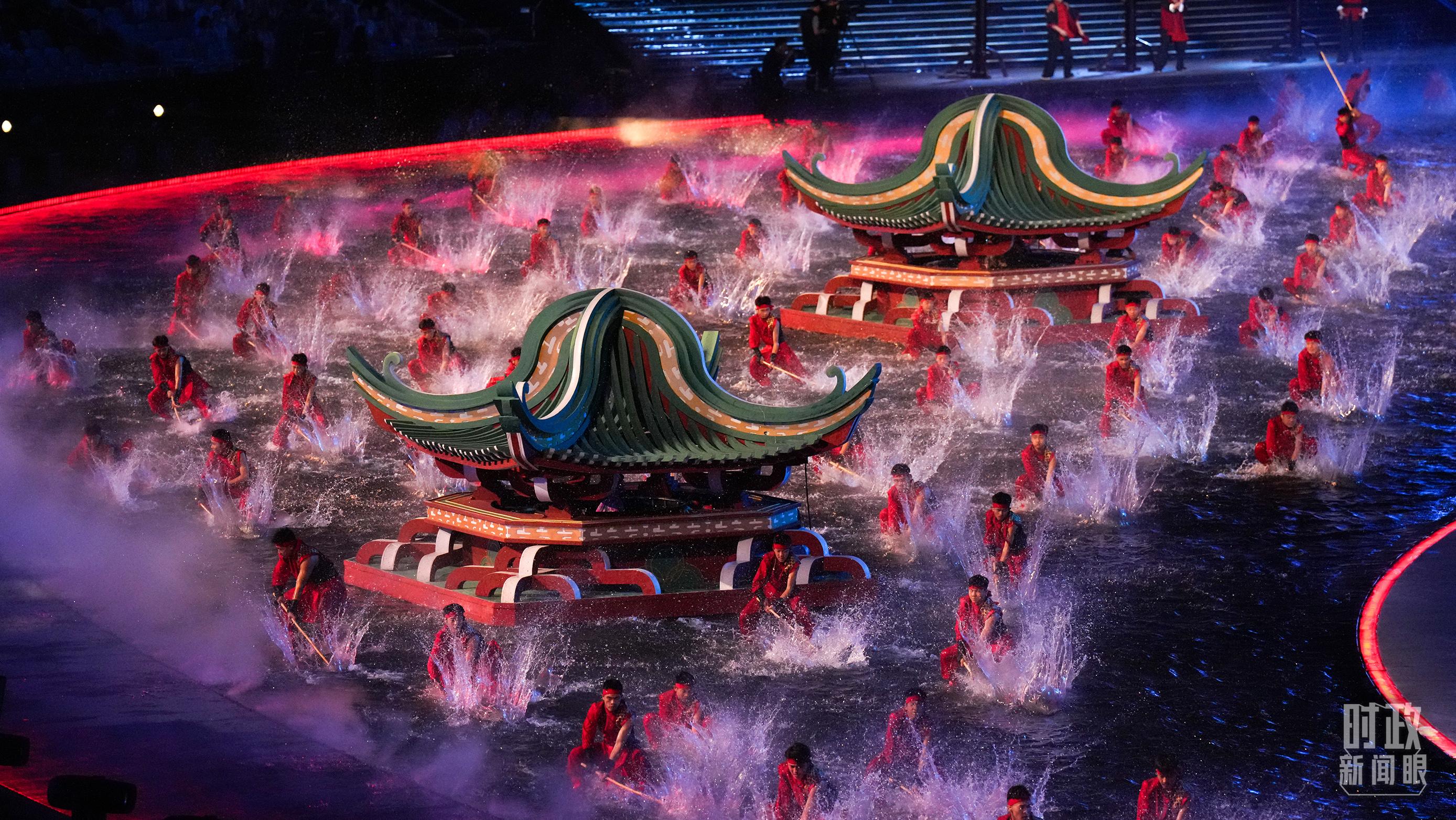 粤港澳大湾区作为全国科技重镇,传统岭南文化与前沿科技深度融合成为本届全运会开幕式的一大亮点。醒狮表演与人工智能技术相互交融,英歌锣鼓搭配全息投影,龙舟竞渡场景通过AR技术“划”入观众席,一场“古今对话”的沉浸式艺术盛宴“燃动”全场。粤剧、咏春、麒麟、广绣、嵌瓷等璀璨的岭南文化符号巧妙融入,赋予开幕式独特的岭南神韵。