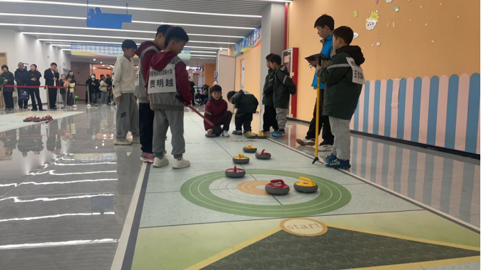 看!他们单膝跪地,手握壶柄,瞄准、推送、发力……动作一气呵成,颇有专业风范。小小的冰壶在赛道上滑出优美的轨迹,撞击出清脆的响声,也撞击出孩子们心中的激情与梦想。