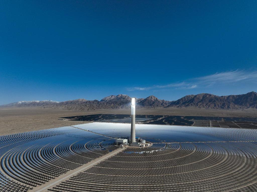 这是2024年4月23日在青海省海西蒙古族藏族自治州德令哈市光伏(光热)产业园拍摄的光热电站(无人机照片)。新华社记者张龙 摄
