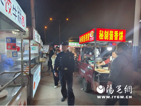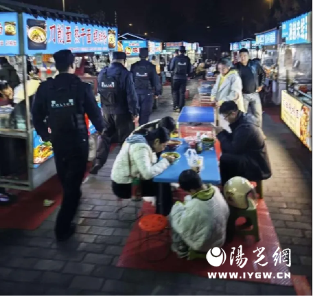 “老板,你这灭火器压力有点不足,得赶紧更换,不然遇到火情就麻烦了。”红旗派出所副所长杜国栋带队,对辖区地铁口、夜市及地库等重点区域展开夜间巡逻工作。民警李珀运发现灭火器存在问题,立即向摊主指出,并耐心讲解消防安全知识。