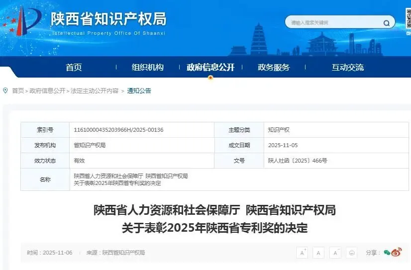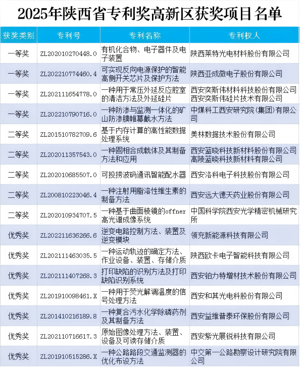 近日,陕西省人力资源和社会保障厅、陕西省知识产权局联合发布《关于表彰2025年陕西省专利奖的决定》,西安高新区表现突出,共有16项专利获奖,包括一等奖4项、二等奖5项、优秀奖7项,获奖数量与质量均位列全省前茅,充分彰显了区域创新实力。