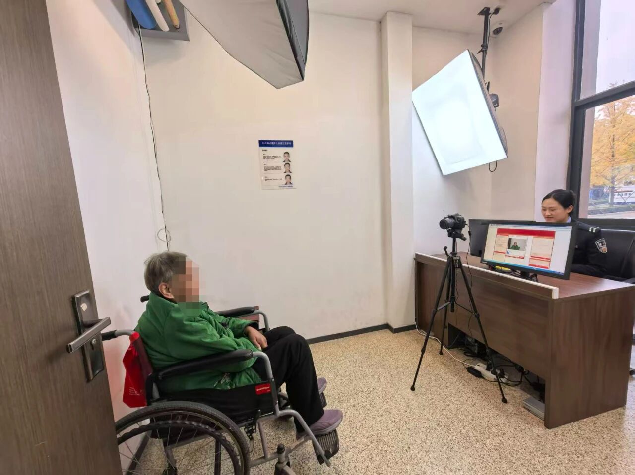 当天清晨,距离正式上班时间还有20分钟,大厅的工作人员已提前到岗调试设备。此时,家属推着一位白发苍苍、坐着轮椅的老人缓缓来到大厅门口,老人手中紧紧攥着一本边角磨损的旧户口本,眼神中满是焦急与期待。工作人员见状,立刻快步上前拉开大门,主动帮忙扶着轮椅推手,小心翼翼地将老人推至大厅内。