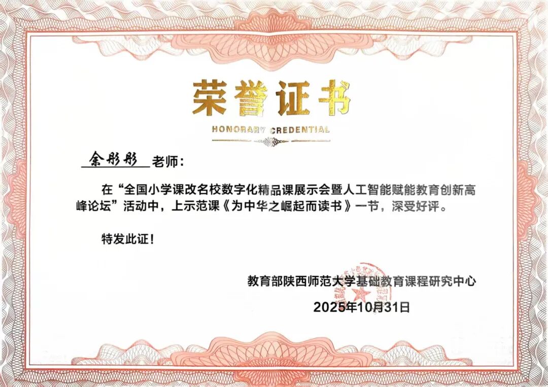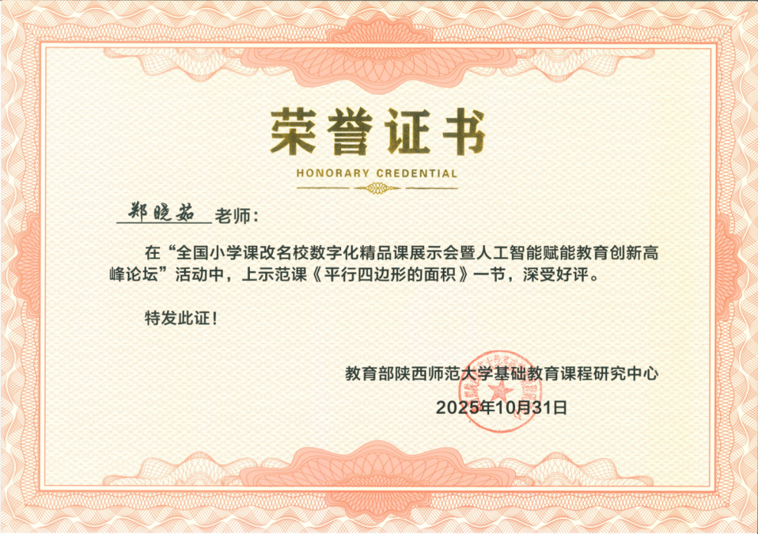 2025 年 10 月 31 日至 11 月 1 日,全国小学课改名校数字化精品课展示会暨人工智能赋能教育创新高峰论坛在河南省郑州市举行。本次高峰论坛汇聚了全国小学教育领域的顶尖专家、课改名校领军人物及骨干教师代表,以“数字化转型与教育创新”为核心,搭建了高品质的教学交流与成果展示平台。