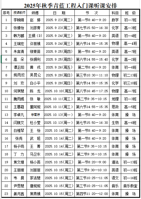 新老教师师徒结对、老教师引领帮扶新教师成长的“青蓝工程”,是西安市五环中学长期坚持的一项强师工程。2025~2026学年度“青蓝工程”启动后,学校教师发展中心随即组织开展了“摸底调研·引领发展”的“青蓝工程·入门课”活动。即通过推门听课的课堂“把脉”和课后的评议交流,了解新入职教师的教学水平与能力状况,发现并解决教学中的实际问题;引导他们积极实施新课标理念下的“五环节·任务驱动”校本模式教学,不断规范教学过程等,以实现在学校教学文化环境中快速成长进步的目的。