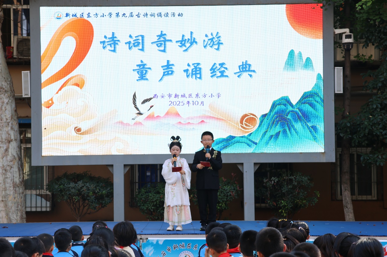 东方小学以第九届读书节 “诗词奇妙游 童声诵经典” 诵读大赛为载体,让三年级学子成为经典传承的主角。舞台上,小主持人气场全开、从容串联,参赛选手们以语调起伏、眼神流转与手势配合,将《蜀道难》的险峻、《满江红》的激昂、《木兰辞》的柔刚与《中国少年说》的铿锵诠释得淋漓尽致,赋予经典崭新的 “少年模样”。台下同学沉浸其中,或轻声跟诵,或感动拭泪,在沉浸式聆听中悄然播下热爱传统文化的种子。这场比赛不仅是才艺的比拼,更是一堂生动的文化传承课,尽显东方少年深厚的文化根脉与昂扬的精神风貌。