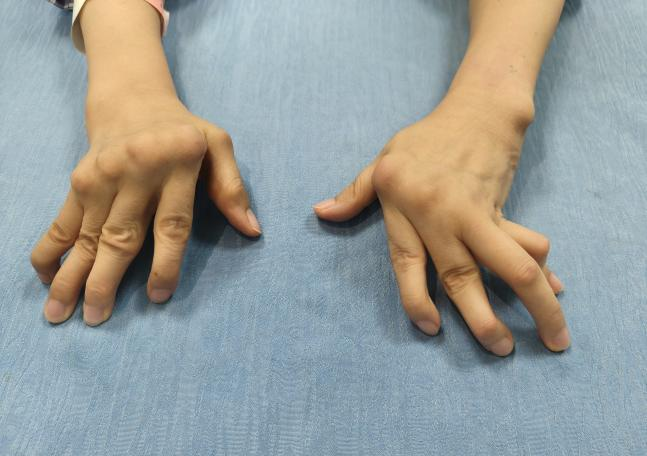 经过规范系统治疗,李女士的症状有所缓解,但疾病对她的“考验”才刚刚拉开帷幕。之后,由于间歇性停药,她的病情反复发作,关节肿痛如影随形。更令人揪心的是,双手关节开始变形,掌指关节半脱位、手指向尺侧偏斜,原本灵活的指尖逐渐变成了“鹅颈样畸形”。严重的关节畸形让她不得不放弃工作,生活被无助与自卑层层包裹。